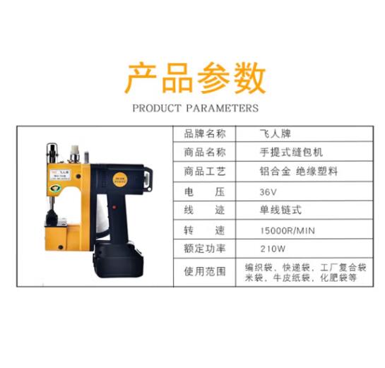商品名称:飞人GK9-988手提式电动充电型缝包机锂电池封包机