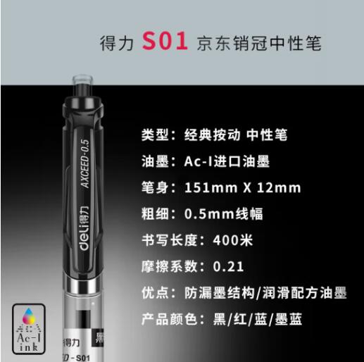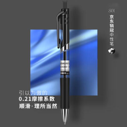 首页 > 办公用品 > 商务用笔 > 得力S01中性笔签字笔 0.5mm子弹头经典办公按动笔水笔 黑色 12支/盒