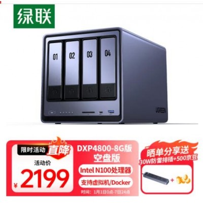 绿联私有云DXP4800 8G版四盘位NAS网络存储个人云硬盘家庭服务器 AI相册 手机平板扩容适用iPhone16